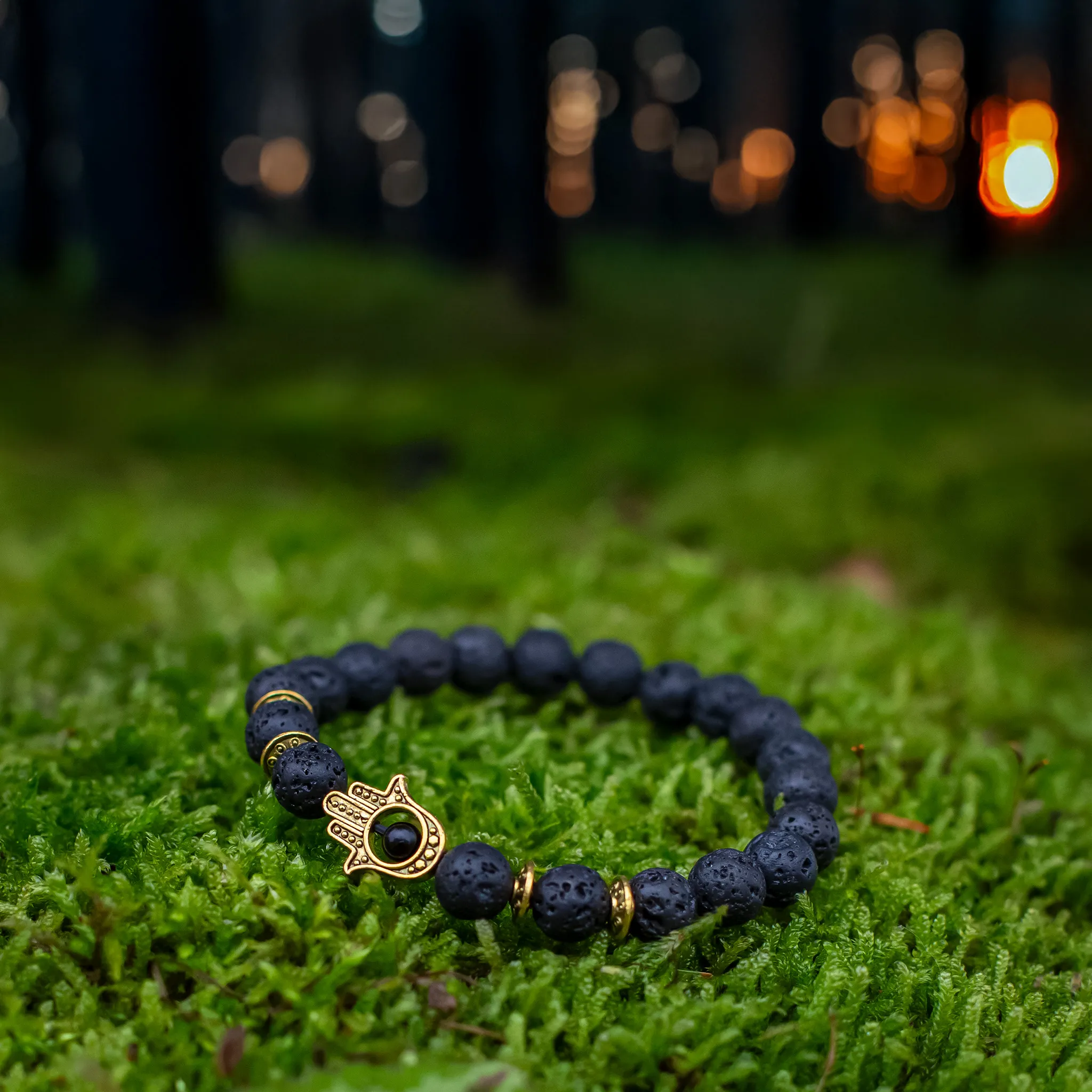 Käevõru keskmes on kuldne Hamsa sümbol – kaitse ja tasakaalu märk, mis lisab ehtele sügavama tähenduse.